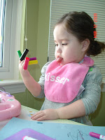 In these next two pictures, I am looking at some pictures on my own. Daddy sets up a slide show and I hit a button to scroll the images at my own leisure. Most of the time the slow, outdated computer can't keep up with my fast paced clicks. The next picutre shows me teasing the cat. I absolutely love that cat. If she's not around I ask for her. When she is around, we exchange meows or I chase her about the house. The next seven pictures are from this year's Stride and Ride event. It was a blast! For some reason they always hold in on the same day as the time change so I loose an extra hour of sleep. Not to mention that I was awake for a couple of hours during th night. I had just fallen back asleep when Mommy and Daddy had to wake me up to get ready to leave for the walk. I was extremely tired all day but still had an amazing time. When we arrived at the mall, there was already a large crowd of people...hundreds. I was having fun watching all the different people and teams, ome of them in very unique and interesting costumes. Some of the volunteers were dressed up as well. My favorite was a turtle. I could not take my eyes off of him. I was smiling at him the entire time. Daddy and I walked over to him and he gave me a hug. When he walked off to see other kids I was following him as quickly as I could, with daddy's help of course. I followed him everywhere. See the turtle picture below. When the event started I got into my car that Papa rented for me. I enjoyed it very much and did not want to get out. We made several laps around the mall with all of the other walkers and finished about an hour later gathering with all the other walkers for the raffle and prizes. Acouple of our group members won prized. Our group ended up coming in second place in the amount of money raised per team. We only missed first place by a couple of hundred dollars. Thank you all for your donations!!! We were told the entire event raised over $100,000. How amazing is that! The third image from the walk is me walking around the mall with daddy's help. This is how I get around these days...most of the time. The next picture shows part of our decorations. After the walk, we hung out in the mall for a while. I got to go into the mall playscape with some of my cousins. It sure was fun. I got to sit on a hippo, and aligator, a turtle and a frog and I walked all over the place. The last picture is a couple days later. It just shows what I like to do with my marker caps. I'm very creative.